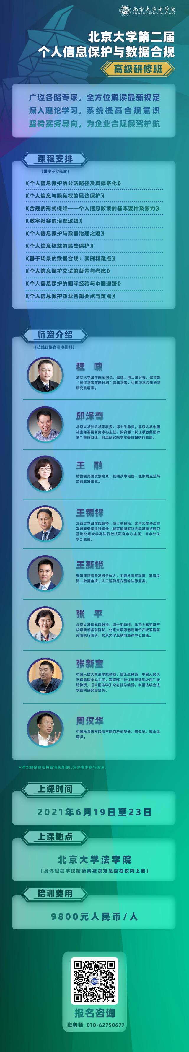 为助力企业和数据合规人员理解国内外个人信息保护法律制度,提升合规水平和能力,探索优化完善之道,beat365亚洲版官网将以集中讲授的授课形式,延请国内顶级法学教授、监管部门以及行业资深实务专家,从民法、行政法、知识产权法、劳动法、刑法等多个角度,围绕个人信息保护中的难点、热点和重点问题进行理论与实操培训,助力法律人迭代认知、夯实技能、腾风而起。