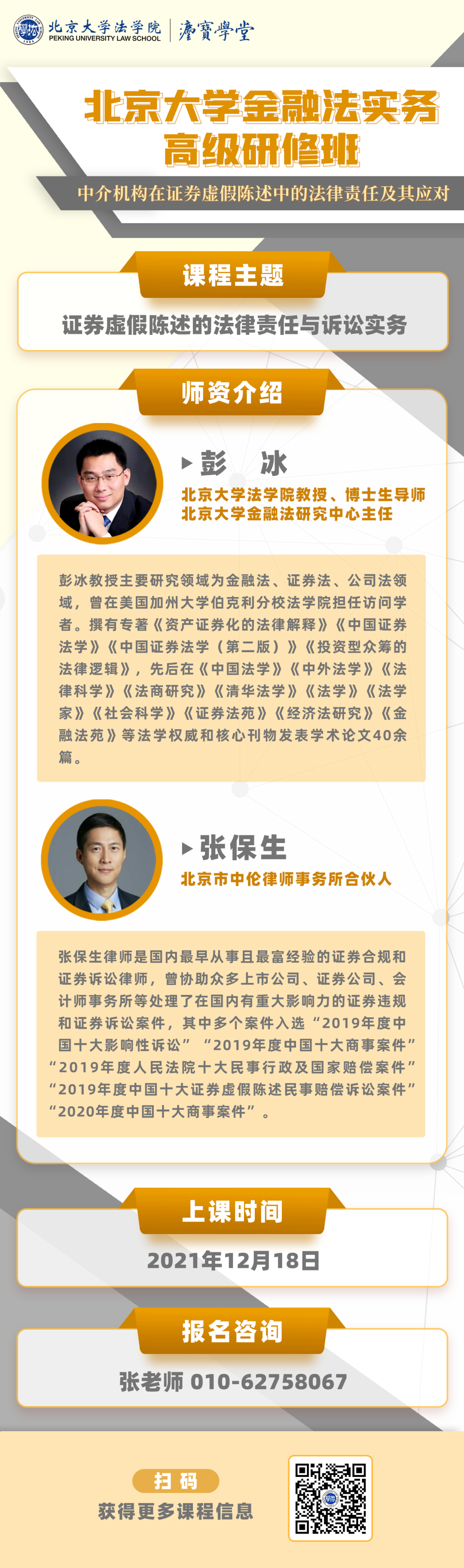 即将开课 | 证券虚假陈述的法律责任与诉讼实务