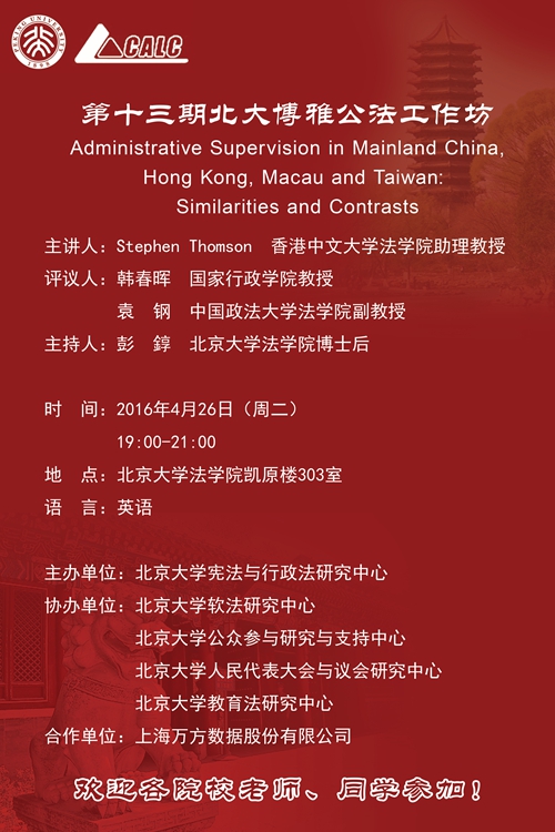 【讲座】Administrative Supervision in Mainland China HongKong,Macau,andTaiwan:Similarities and Contrasts