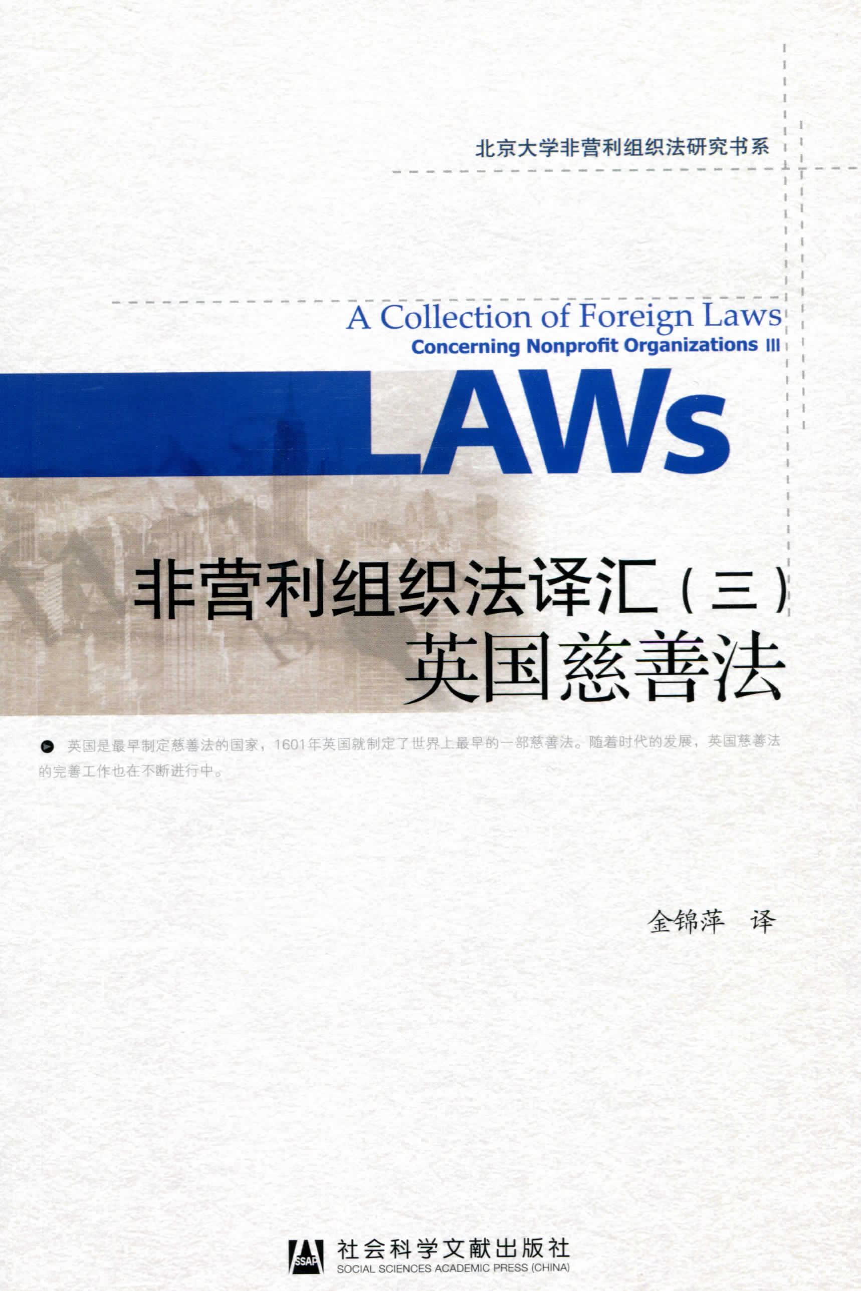 • 金锦萍:《非营利组织法译汇(三)——英国慈善法》