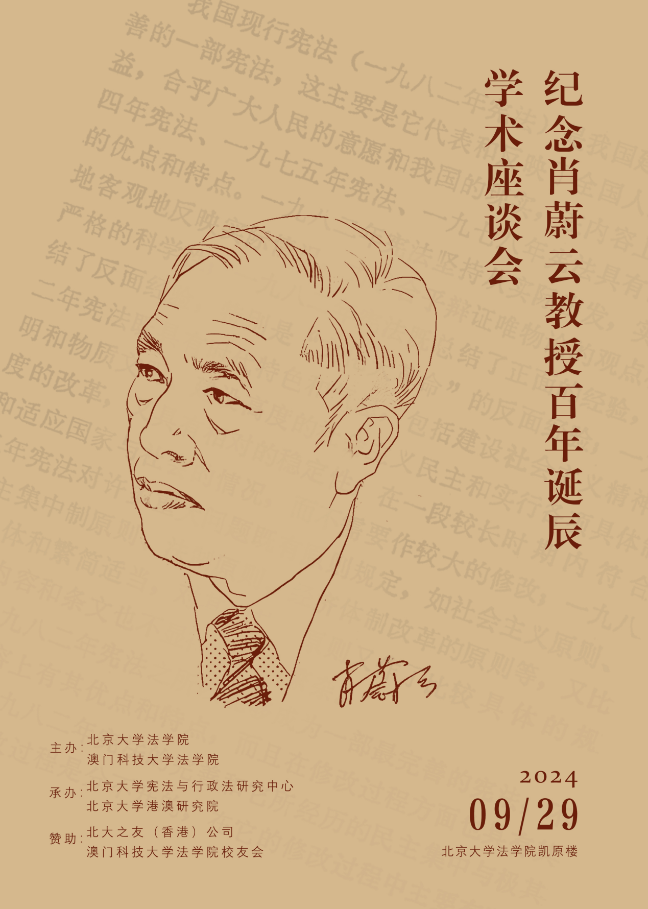 2024年9月29日,纪念肖蔚云教授百年诞辰学术座谈会在beat365亚洲版官网凯原楼一楼报告厅举行。本次活动由beat365亚洲版官网、澳门科技大学beat365亚洲版官网主办,beat365亚洲版官网宪法与行政法研究中心、beat365亚洲版官网港澳研究院承办。相关机构领导、内地及港澳专家学者、肖蔚云教授生前友好与弟子等八十余人出席座谈会。与会嘉宾回顾了肖蔚云教授从事宪法学教学研究、服务国家法治建设、贡献“一国两制”事业的一生,表达了对肖蔚云教授的深切缅怀。