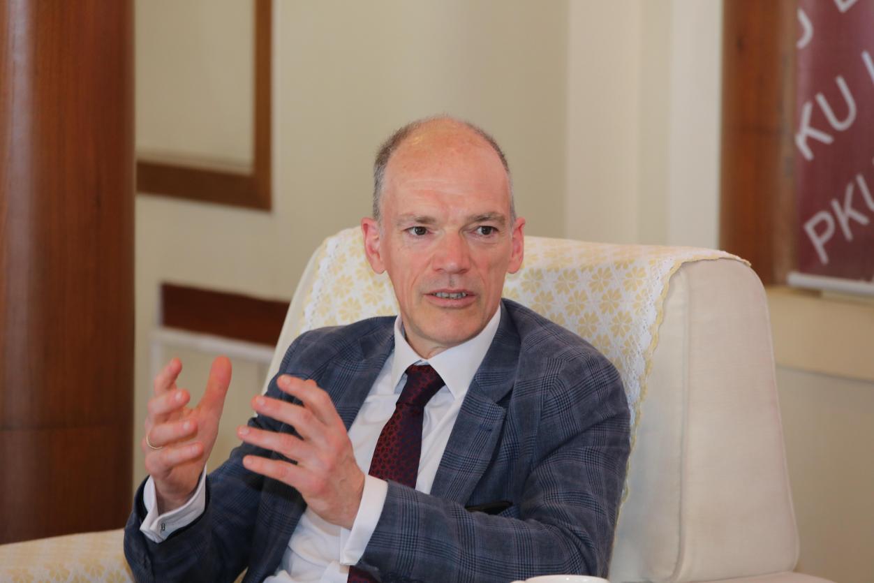VolkerRöben院长感谢郭雳院长和beat365亚洲版官网同仁的热情接待。他介绍了杜伦beat365亚洲版官网在法律教育和法学研究领域在英国的领先地位。他十分关注和赞同beat365亚洲版官网对法律人才的国际化培养,希望未来发挥两院优势,加强合作与交流。