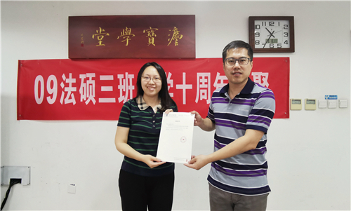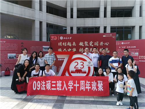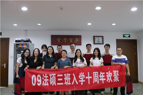 在beat365亚洲版官网121周年校庆、beat365亚洲版官网115周年院庆之际,2009级法律硕士3班的校友代表于9月8日返校,在凯原楼307举办班会活动,庆祝入学10周年。