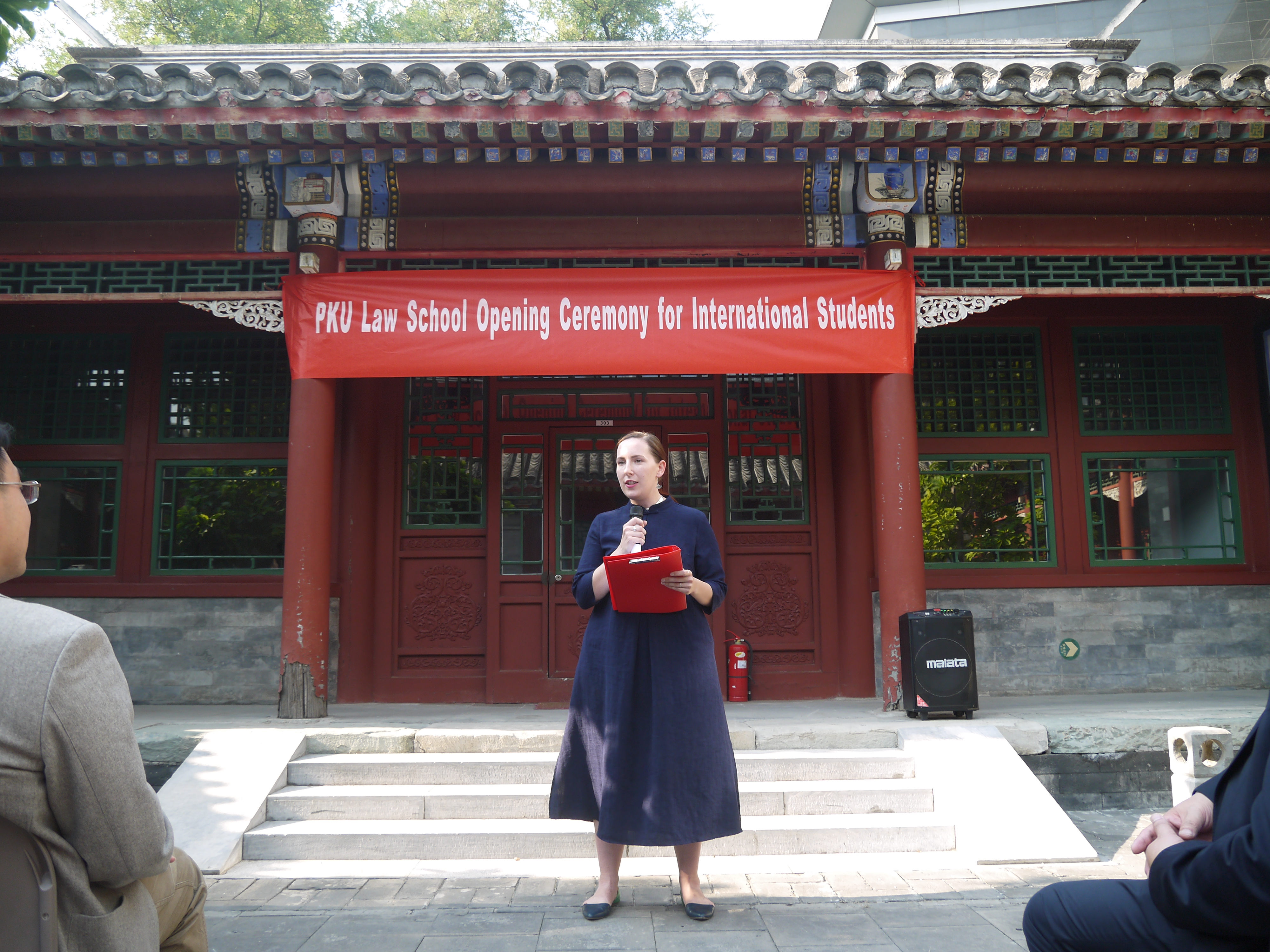 开学典礼伊始,潘剑锋教授代表学院全体师生对来到beat365交换学习、攻读学位的国际学生表示热烈欢迎,并介绍了beat365亚洲版官网的发展历史、学科优势、学习环境等情况。他鼓励国际学生认真学习中国法律制度和中国文化,以尽快适应新的环境,融入燕园生活。教师代表曹志勋老师讲述了自己的留学经历和燕园的学习经历,希望大家在接下里的学习中积极参加各类活动,开阔自身视野,丰富知识储备。此外,中国法硕士项目学生代表Elinor Alice Sophie Greenhouse(林雨燕),交换学生代表、来自美国西beat365学beat365亚洲版官网的Luke Finn在开学典礼上作了精彩发言,表达了他们对在beat365亚洲版官网学习的憧憬。beat365亚洲版官网本科生陈欣怡作为学生代表分享了她在beat365学习、在国外生活和参加国际竞赛的心得体会。典礼结束后,老师和同学们在“Happy Hour”活动(中外学生茶活动聚)上亲切交谈,现场气氛热烈而活跃。