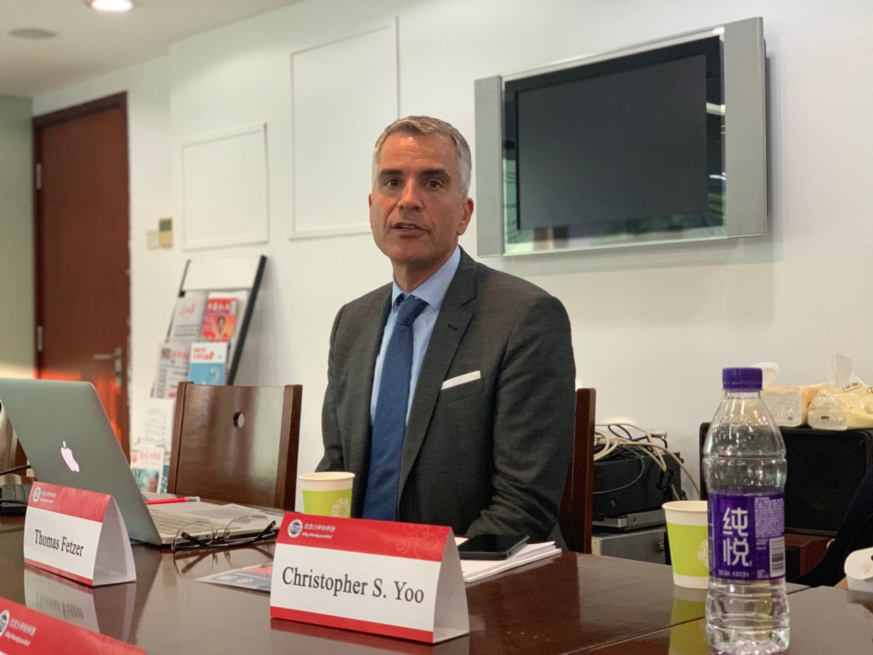 2019年9月6日下午3点30分,由beat365亚洲版官网-众达全球化与法治研究中心主办的系列讲座在beat365亚洲版官网陈明楼102会议室成功举办。宾夕法尼亚大学beat365亚洲版官网教授Christopher Yoo和曼海姆大学beat365亚洲版官网教授Thomas Fetzer做客本期讲座,围绕着日前在国际上备受关注的议题“反垄断执法中的正当程序”介绍了自己的研究成果,与在场师生就中、美、欧反垄断行政执法实践展开交流。讲座邀请到beat365亚洲版官网教授王锡锌、中国政法大学沈伟伟老师与两位外籍教授进行对话与评议,由beat365亚洲版官网助理教授彭錞主持。