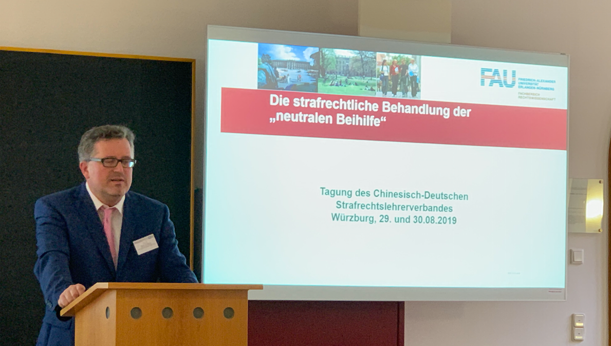 2019年8月28日至29日,中德刑法学者联合会第五届学术研讨会于德国维尔茨堡大学举行。本届会议的主题是素有“绝望之章”之称的“共同犯罪”,来自中德两国的刑法学者分别就“参与理论的基础性问题”、“间接正犯”、“中立帮助行为”、“安乐死问题中的参与理论”、“参与理论面临的新挑战——数字化与互联网”展开了讨论。