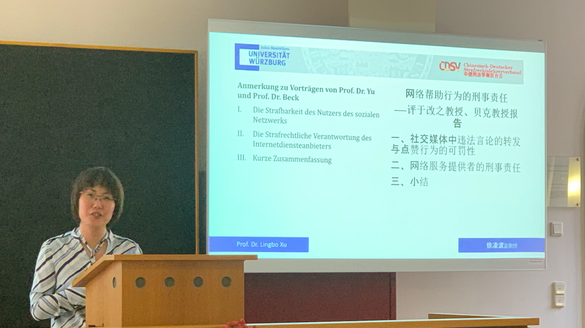 会议的第三个议题是“中立帮助行为”,由纽伦堡大学的库德里希教授和中国人民大学的王莹副教授发表主题报告。