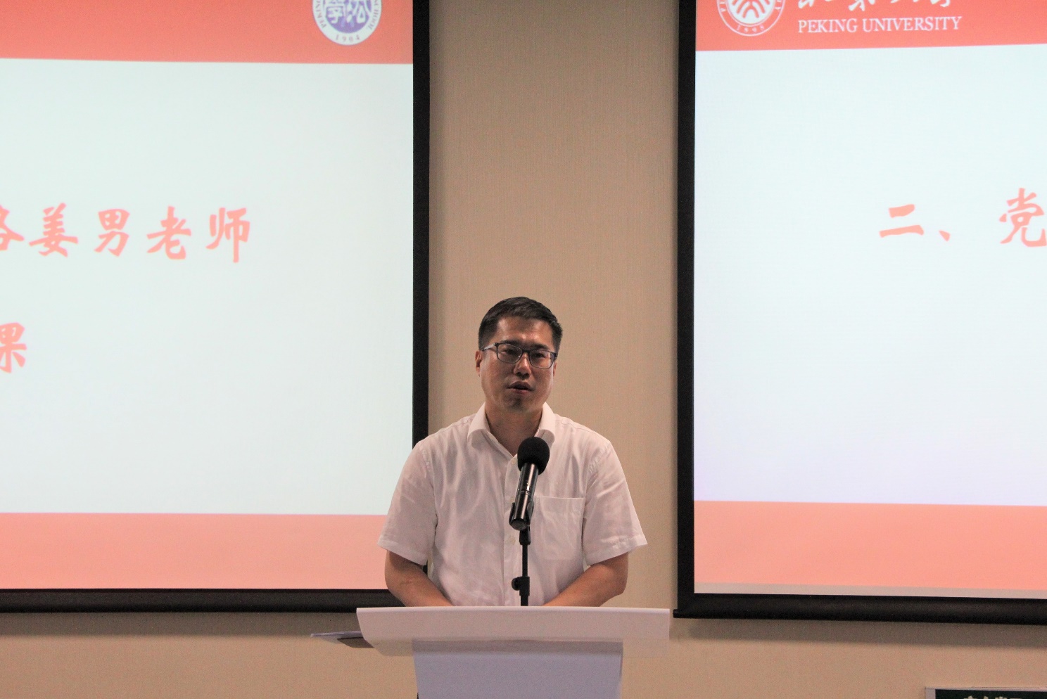 首先,全体与会人员起立,奏唱国歌。随后,路姜男老师围绕“不忘初心、牢记使命”主题教育为学生党员做辅导报告。他介绍了本次“不忘初心、牢记使命”主题教育的重要意义与根本任务,并对党支部和支委扎实开展主题教育提出了若干要求和建议。他表示,通过本次主题教育,学生党员应该更好地发挥在成长成才方面的示范带动作用。他对各学生党支部和学生党员提出殷切期待,鼓励大家通过专题调研、社会实践、志愿服务等方式深入体会中国共产党的初心和使命,进一步树牢“四个意识”,坚定“四个自信”,坚决做到“两个维护”,各位党支部委员应充分发挥自身的模范带头作用,抓住契机,提升党团班组织的凝聚力、向心力。