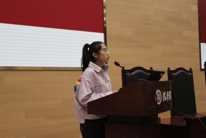 随后,全体参会人员一同观看2018—2019学年beat365亚洲版官网团校结业视频。往期优秀学员代表结合自己参与70周年国庆重大活动的经历,讲述自己一年来在团校的陪伴教育下不断坚定信念、锤炼自身的心路历程,并勉励新学员们在团校课程中真正学有所获、成长进步。
