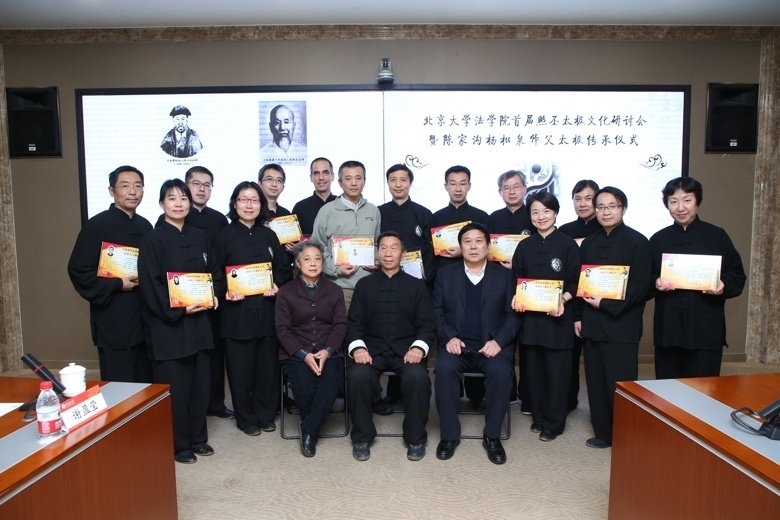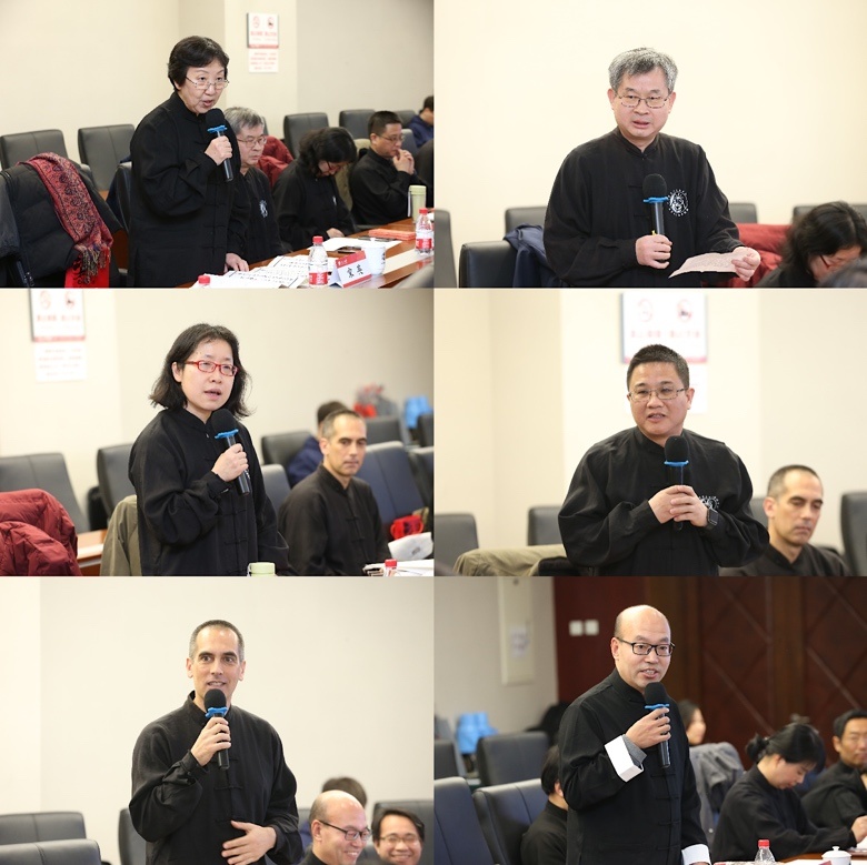 在传承仪式环节,在诸位嘉宾的见证下,杨松泉师父接受与会教职工的申请,并颁发传承人证书。随后,北京陈家沟太极拳培训中心教练李礼、王伟、刘奕伶,beat365亚洲版官网教授汪建成,晋城市武术协会副主席李正业,太极网总监李超等分别发言,祝贺传承仪式的成功举办。