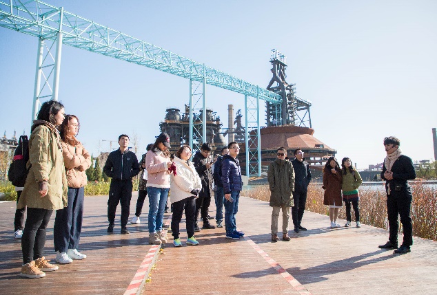 首钢工业遗址可追溯至1919年,是工业2.0时代的遗迹,经历了民国战乱和抗日烽火的考验,最终在新中国成立后得到迅速发展。如果说钢铁工业见证了中国经济腾飞的奇迹,那么首钢遗址便是走过了近现代中国工业化的兴衰荣辱。同学们在导览的指引下,参观了公园内的群名湖、三高炉、复建东门以及秀池。在近距离观察诸多大型炼钢设备、深入了解“钢铁是怎样炼成”的历史后,同学们领略到了中国工业化的伟大壮举,领悟到共产党人带领中华民族实现伟大复兴的初心与使命,也更进一步理解到党的十九届四中全会所提出的“推进国家治理体系和治理能力现代化”的深刻含义。