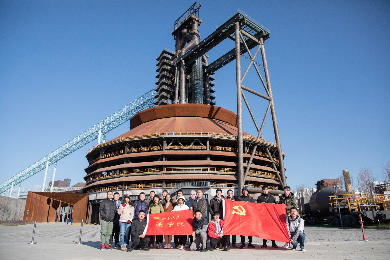 (2018级法学博士党支部于首钢三号高炉前合影)