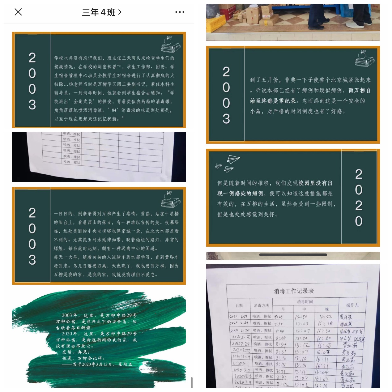 3月13日支部推出“‘四’海同心——2003-2020,我们都住在万柳”主题推文,邀请支部内现留宿万柳公寓的曹榕同学分享介绍学校现行的防疫政策措施,并通过搜集网络资料深情回顾了“非典时期”住在万柳的同学是如何众志成城、克服困难,自始至终保持感染零记录的事迹,图文并茂,让不在校的同学也能感受到学校为保障同学们的安全所作的努力,帮助同学们更好地理解“不得返校”防疫规定的用意,进一步加强了支部的凝聚力,坚定了同学们团结起来、共克时艰战胜疫情的信心。