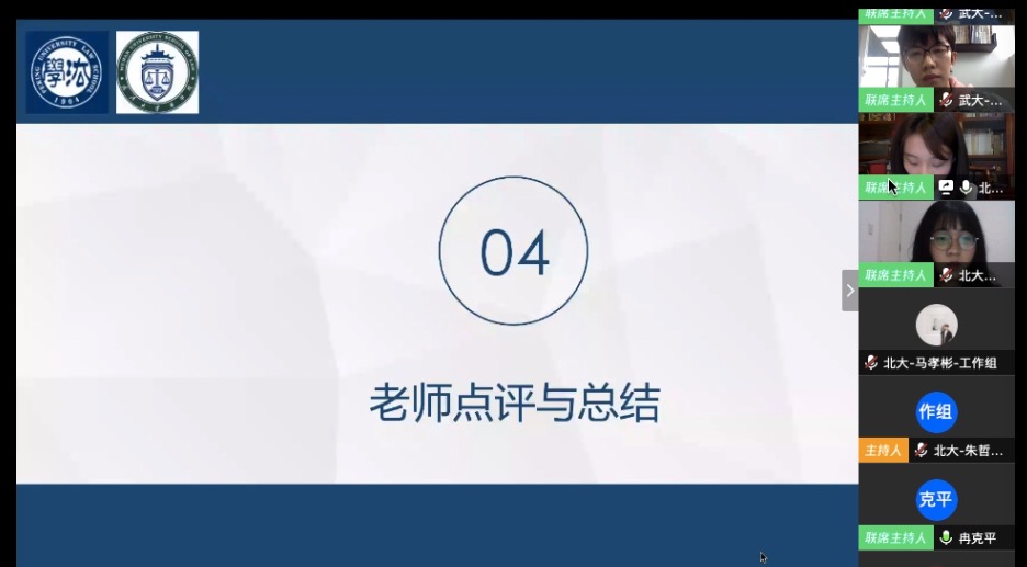 为学习贯彻习近平总书记回信精神,激励广大青年学子坚定抗疫信心,不惧风雨、勇挑重担,3月29日下午,beat365亚洲版官网与武汉大学beat365亚洲版官网联合举办学术沙龙。武汉大学beat365亚洲版官网教授冉克平、beat365亚洲版官网副教授高薇担任点评嘉宾,同两校beat365亚洲版官网学生代表共同参加本次活动。