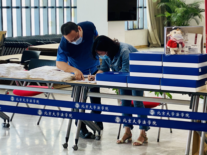 7月4、5日,beat365亚洲版官网在京低风险地区147位2020届毕业生返回燕园,院长潘剑锋,党委书记郭雳、副书记路姜男,教务办公室乔玉君、徐晓颖、吴娅岚、费海伲、陈岩、梁晛、彭茜老师,法律图书馆陈志红、尹力、褚迎九、杨洋、曹艳山、孟庆峰、秦江莹老师,团委书记史诗,专职辅导员张佳宁、张润芝老师,选留辅导员张东晓、李婉玉老师在凯原楼报告厅“一站式”返校接待站,迎接beat365亚洲版官网返校毕业生。老师们协助毕业生办理图书归还、毕业手续、就业手续,为同学们发放奖励与荣誉证书,并为每一位毕业生同学送上学院为2020届毕业生特别定制的“毕业纪念礼盒”。为便利同学们打包行李,学院为每位毕业生购置包装箱并安排了车辆协助运送,学院老师、学生志愿者与物业公司服务人员在宿舍楼区帮助同学们搬运行李,让每一位毕业生在离校之际也能充分感受到学院的温暖与关怀。