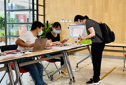 学院老师从清早开始就在凯原楼“一站式”接待站,协助同学们办理毕业离校手续