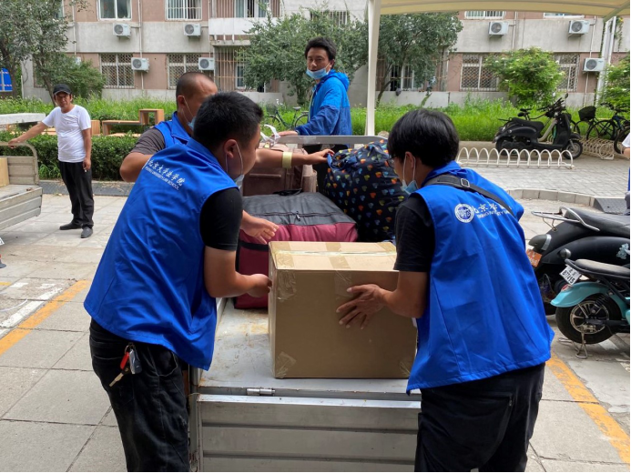 7月30日、8月3日,学院辅导员在持续一学期的一对一联系沟通基础上,积极配合学校相关部门,为在境内外港澳台及留学生毕业生以及因在疫情中高风险地区等原因无法自行返校的毕业生同学们完成行李收纳、打包托运以及退宿离校相关手续,积极确保每一位毕业生顺利毕业、有序离校。