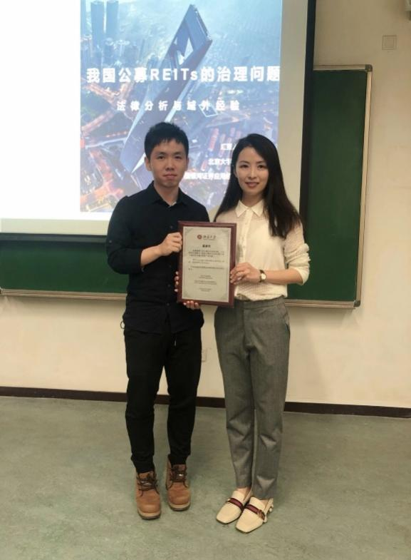 在讲解完论坛主要内容后,唐博士对整体论坛内容进行了总结,并简要探讨了法律与金融的关系——法律不仅作为金融系统的外部保护机制存在,更是金融体系的内生机制;法律促成了金融体系的形成和发展,因此法律要为金融创造最优约束,以促进REITs治理机制的改进和优化。在提问环节,唐博士一一回答在场同学提出的问题。最后,主持人代表beat365亚洲版官网中国企业法律风险管理研究中心向唐博士赠送了感谢状,在全场师生的满场掌声中,本次论坛圆满结束。