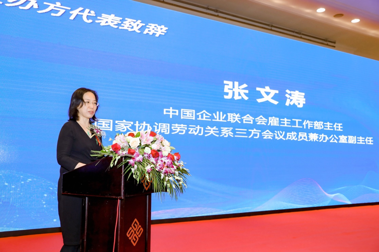 国家协调劳动关系三方会议成员兼办公室副主任张文涛代表主办方致辞