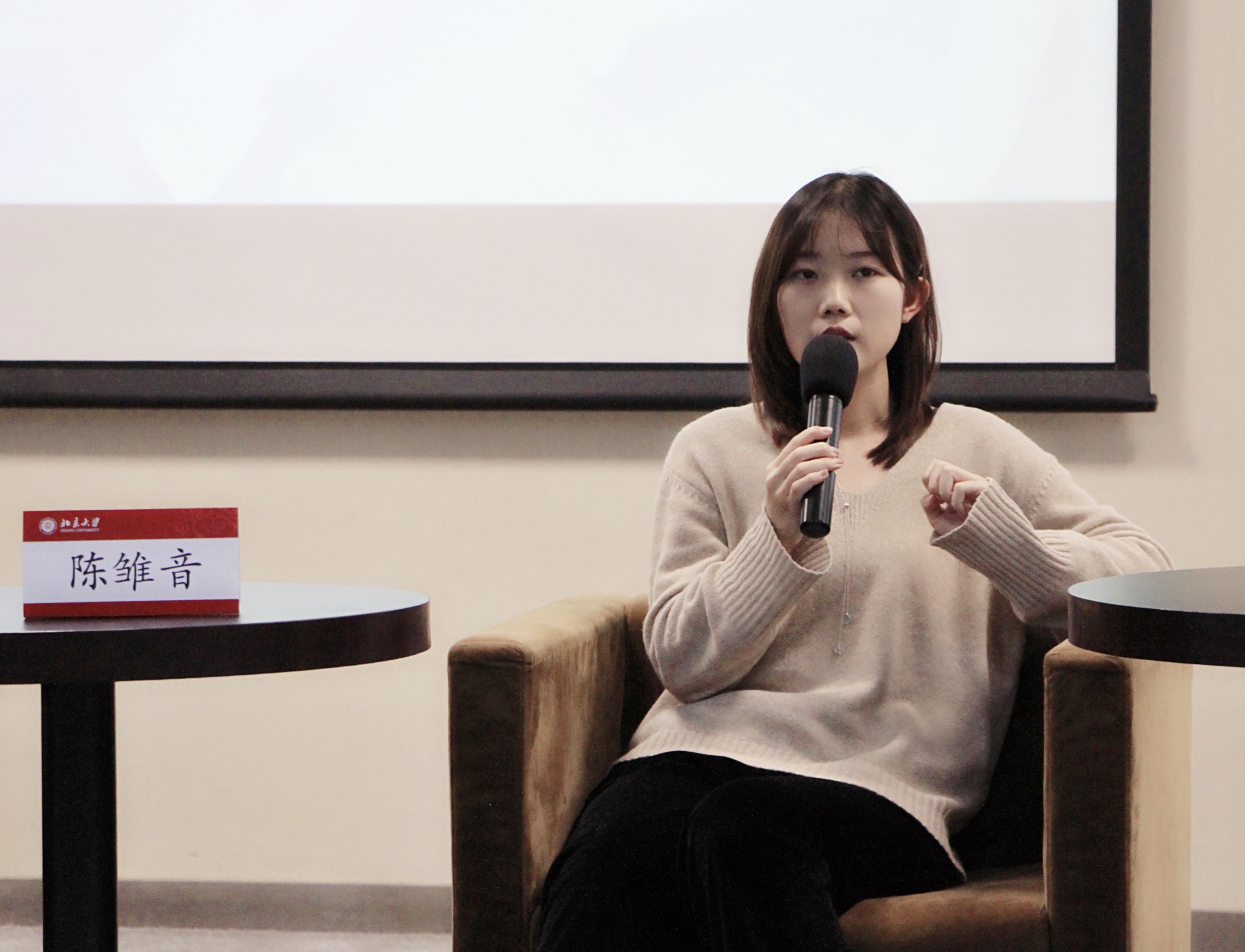 在主题分享环节,四位嘉宾依次向同学们详细分享了自身职业选择的心路历程和职场体验。牛伟强校友分享了选择在公务员机关工作的初心,并为同学们介绍公务员备考经验。他鼓励同学们尽早确定方向,在秋招的过程中摆正心态,正确面对压力与焦虑。陈雏音校友从职业选择、求职经验和求职方向调整等方面介绍了自己先后在律所、事业单位求职的经历。她建议同学们在探索职业生涯规划时合理考虑自身条件与目标职业的适配性,尽量降低盲目择业的风险。就职于国企的陆亚伦校友从实习求职经历、单位工作氛围等方面为同学们分享自己的心路历程与工作体验。他鼓励同学们在实习中尝试与体验不同职业的工作节奏,同时珍惜在校学习时光,学好专业知识,为未来求职打牢基础。张仕锦校友结合自身本科毕业后从出国深造到回国发展的过程,分享在实践中对“法律人(lawyer)”、律师的职业魅力、如何把书生气转化为接地气等话题的理解,并介绍目前的工作业务与状态。她建议同学们要尽早确认个人感兴趣的领域和方向,在求职时要重视完善自己的简历、妥善准备专业问题、关注大型宣讲会和推荐机会。