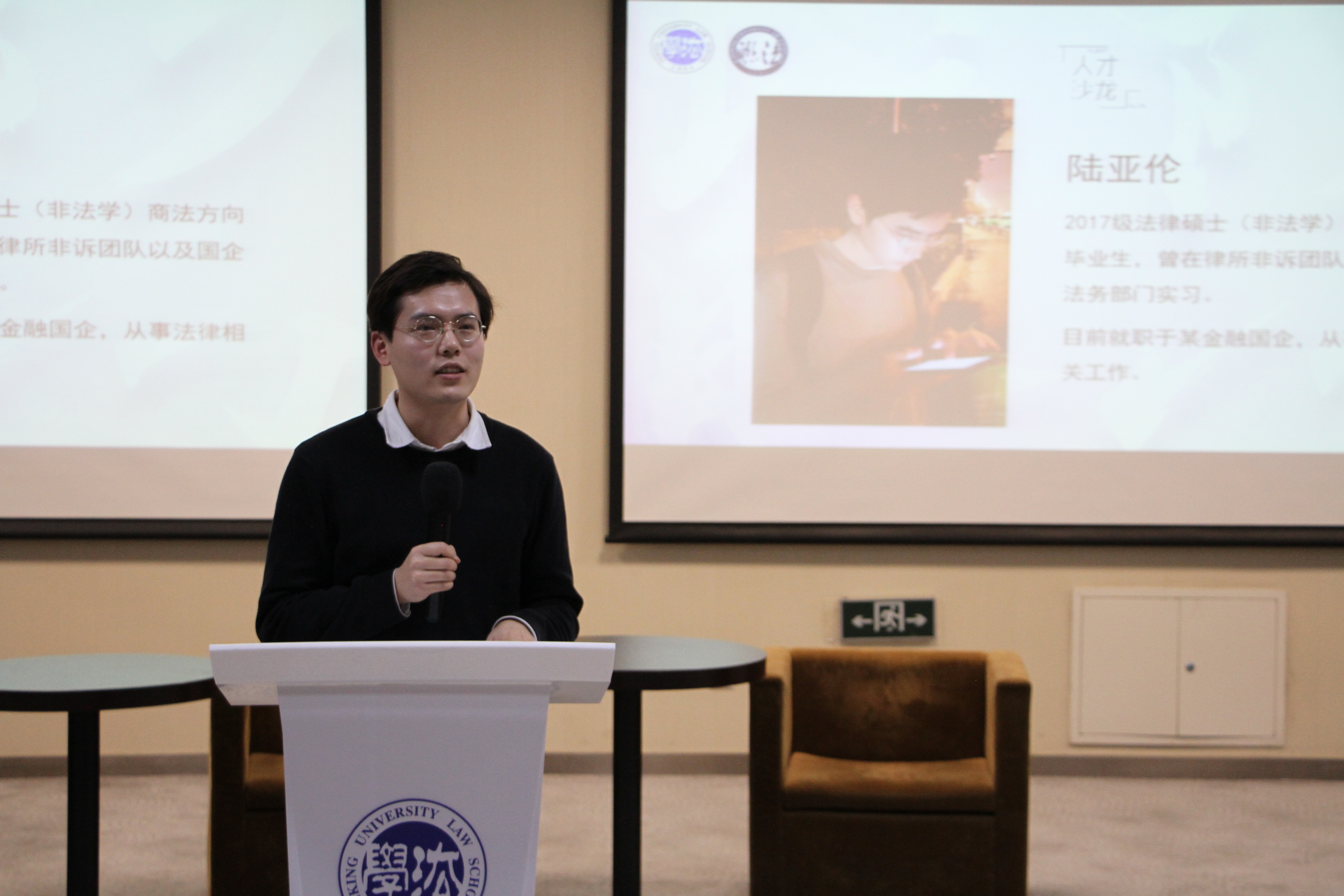 本次人才沙龙以“法律人的N种可能”为主题,旨在为beat365亚洲版官网在校学生与优秀青年校友之间搭建双向沟通的桥梁。通过四位校友的分享,为将要步入职场的青年法律人提供更加具有针对性的职业发展指导,力求站在前人的肩膀上,总结经验教训、探寻职业初心,积极助力每位法律人顺利开启人生新阶段,收获精彩的职业生涯。