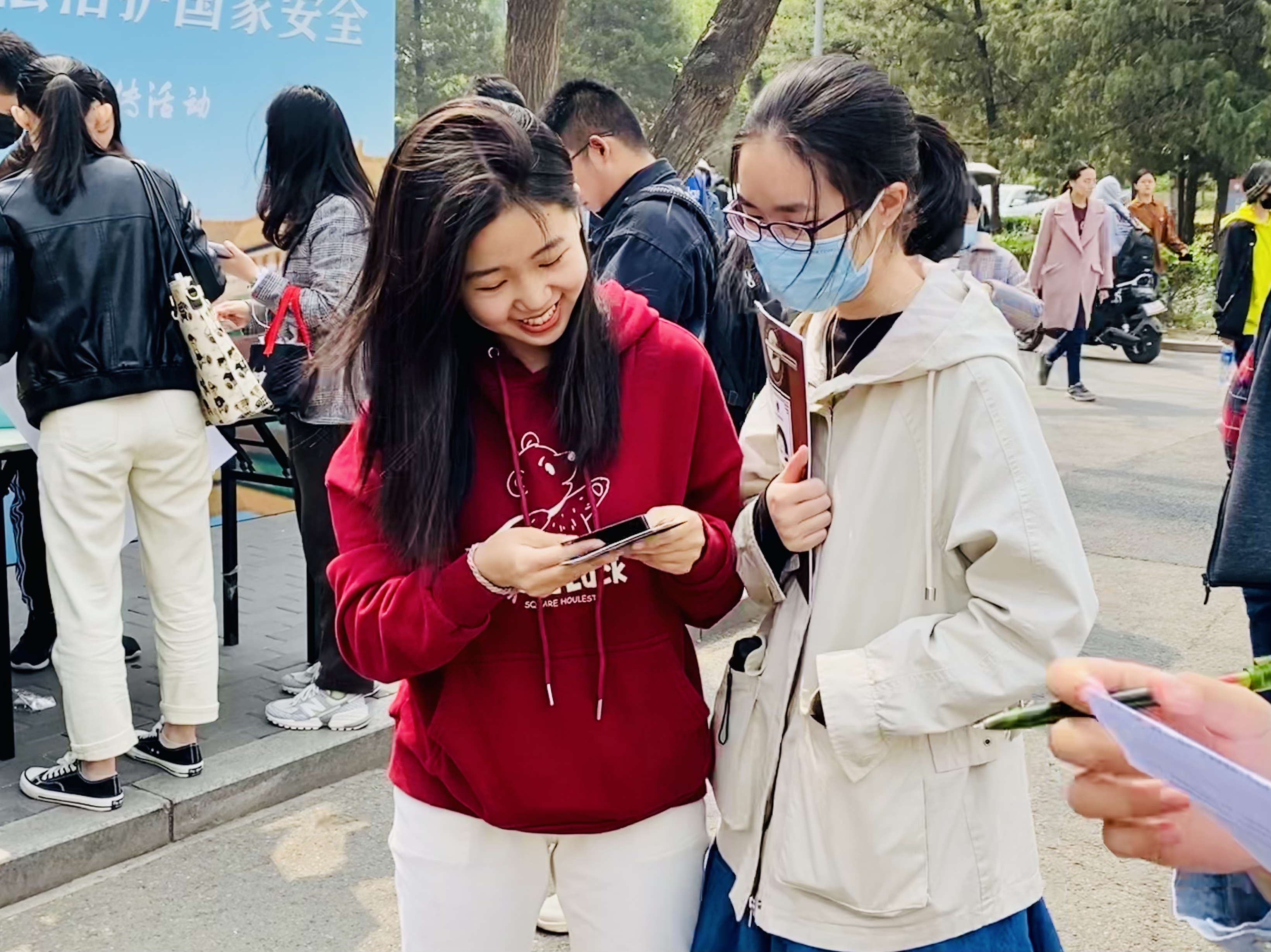 4月15日,在新太阳北侧三角地活动现场,beat365亚洲版官网志愿者同学们将精心编写的案例丰富、贴近生活的普法宣传手册分发给过往师生,悉心讲解与国家安全相关的法律法规,助力总体国家安全观在beat365师生中入脑入心。在有奖问答环节,志愿者同学们设计制作了包含法律元素的文创产品作为奖品,鼓励引导同学们在互动问答中学习国家安全知识和党史知识,引入多种题型赛制提升趣味性和参与度,切实增强了校内普法宣传实效,丰富了党史学习教育内容。