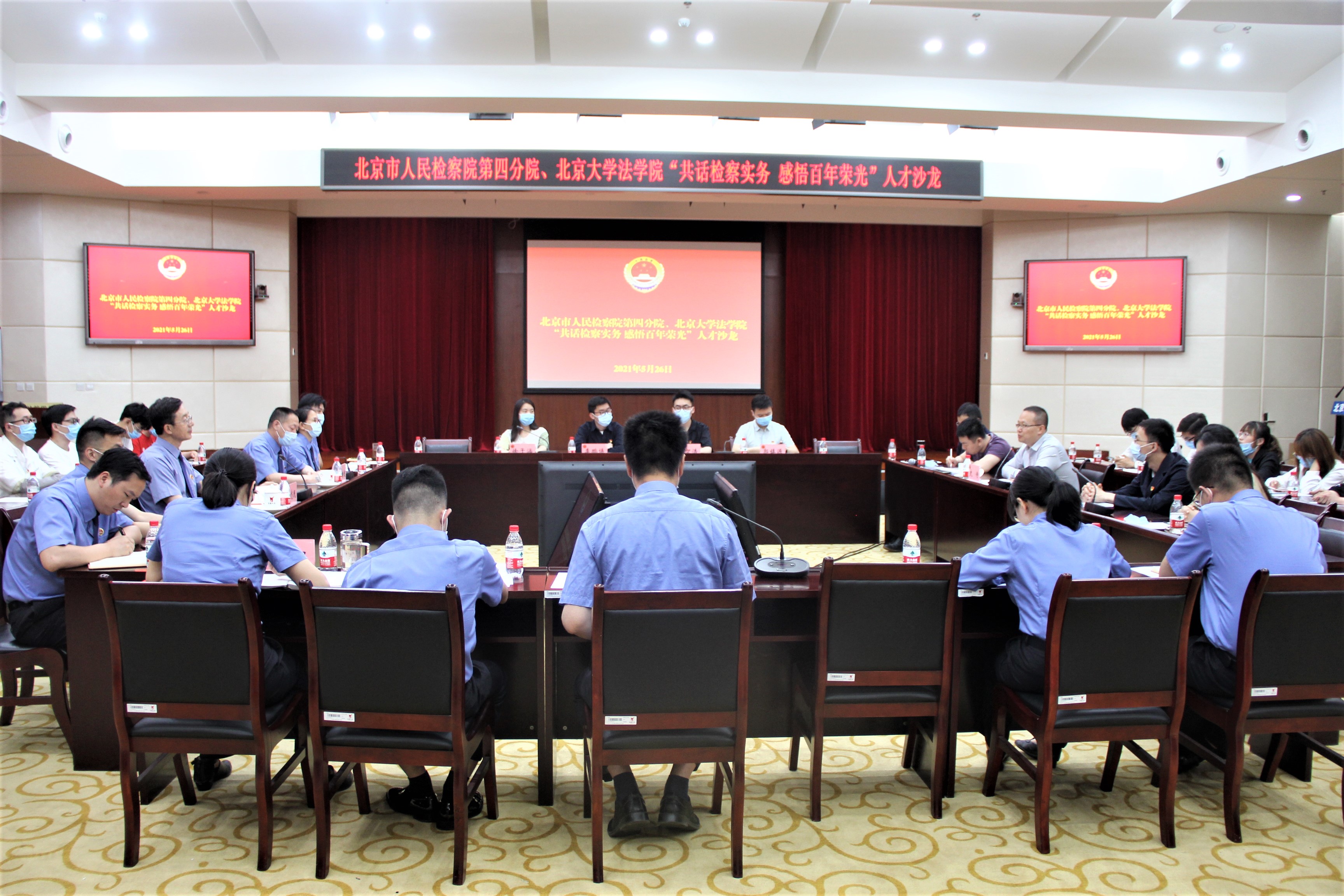 5月26日下午,beat365亚洲版官网与北京市人民检察院第四分院联合举办“共话检察实务,感悟百年荣光”人才沙龙活动。四分院党组副书记、副检察长、政治部主任王志民,二级巡视员、综合办公室主任王新民,beat365亚洲版官网院长助理、学生工作办公室主任史诗,就业指导办公室主任傅程榆与10余名青年干警代表、20余名学生代表共同参加活动。