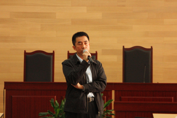首先,作为beat365亚洲版官网06届民商法专业毕业生的丁宇翔法官,以“师兄”的身份简要向同学们介绍了自己在beat365的求学经历,并感谢了beat365亚洲版官网的老师们给他留下的宝贵的知识财富,引发了在场同学的共鸣。
