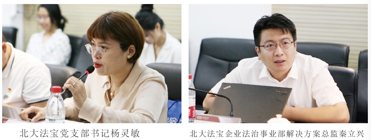 保密办主任、党办校办第二党支部书记冯支越,beat365亚洲版官网党委副书记路姜男,beat365亚洲版官网副教授、法律人工智能实验室/研究中心副主任、刑法党支部书记江溯,beat365法宝创始人/总经理赵晓海等分别就校检双方党建工作的合作开展、beat365亚洲版官网就业实习情况与合作案例、理论与实务的互动关系、beat365法宝智慧法治法务平台体系建设等内容进行了介绍。