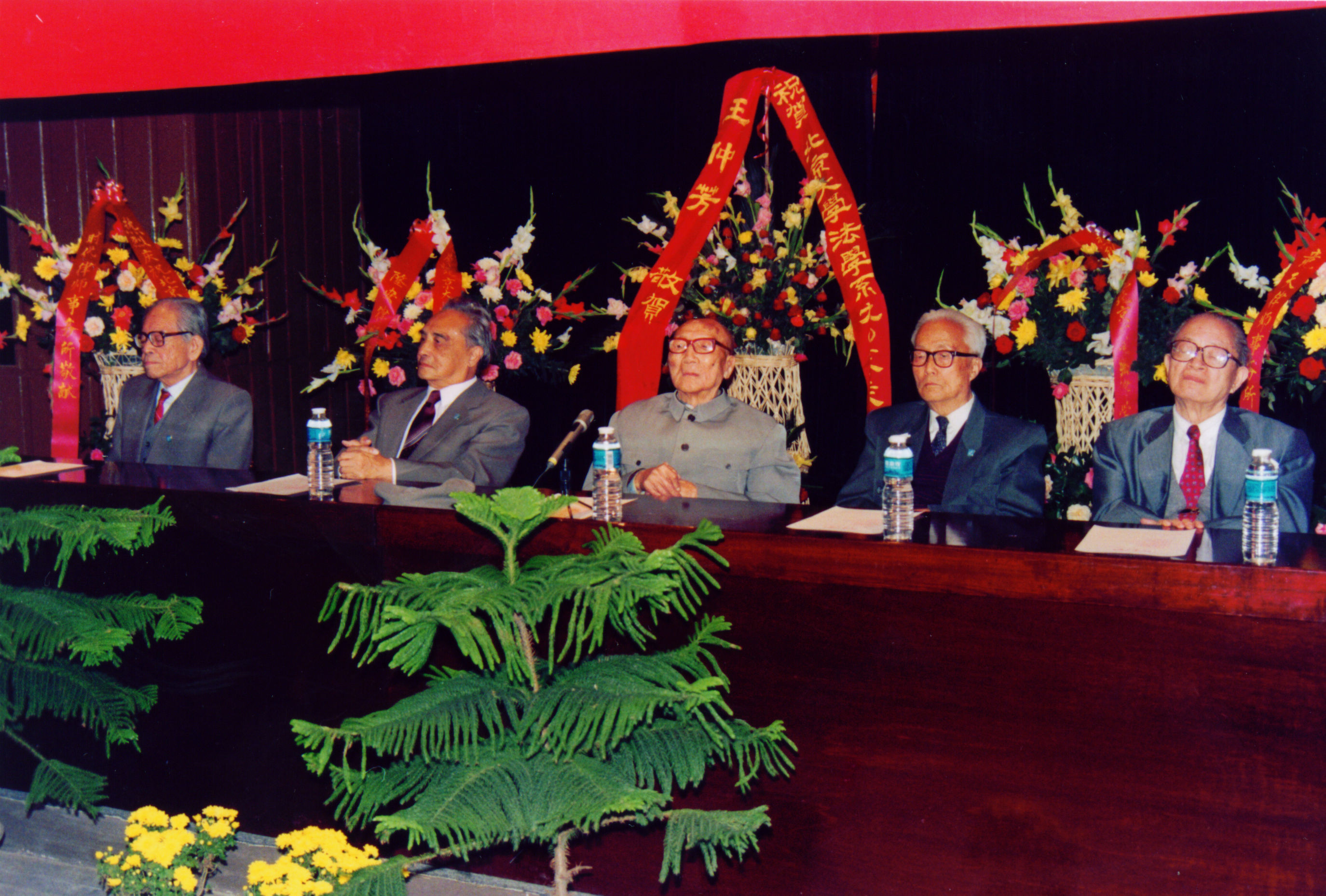 20世纪90年代,在“学习五老,再谱新篇”的祝寿会上,龚祥瑞、芮沐、陈守一、甘雨霈、王铁崖五位老先生与beat365法律系师生交流