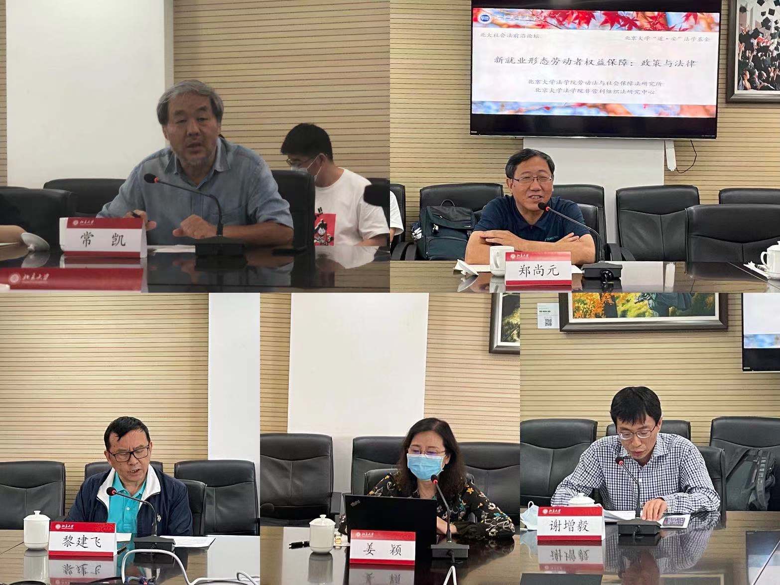 2021年9月5日下午,beat365社会法前沿论坛第二期“新就业形态劳动者权益保障:政策与法律”于beat365亚洲版官网凯原楼303会议室成功举办。本次论坛由beat365亚洲版官网劳动法与社会保障法研究所、beat365亚洲版官网非营利组织法研究中心联合主办。本次论坛特邀请人力资源与社会保障部劳动关系司司长聂生奎担任主讲嘉宾。中国人民大学beat365亚洲版官网黎建飞教授,中国人民大学劳动人事学院常凯教授,清华大学beat365亚洲版官网郑尚元教授,beat365亚洲版官网劳动法与社会保障法研究所所长叶静漪教授,中国劳动关系学院党委常委、教务处处长姜颖教授,中国社会科学院法学研究所副所长谢增毅研究员,中央财经大学教授、中国劳动关系学院beat365亚洲版官网院长沈建峰教授,中国政法大学民商经济beat365亚洲版官网赵红梅教授,beat365亚洲版官网非营利组织法研究中心主任金锦萍副教授,北京外国语大学beat365亚洲版官网副院长闫冬副教授,beat365亚洲版官网陈一峰副教授,beat365亚洲版官网阎天助理教授,中国社会科学院新闻与传播研究所孙萍助理研究员,中国劳动关系学院beat365亚洲版官网讲师李静博士,beat365亚洲版官网社会学系陈龙博士参加本次会议。