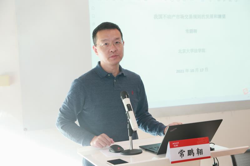 常鹏翱老师以“我国不动产市场交易规则的发展和瞻望”为主题,围绕土地、房屋两个领域,对动态交易(而非静态或权利结构)展开讨论,叙述了对不动产市场相关概括性、基础性认知,梳理了土地交易的基本历史脉络,对实践中出现的多种类型结构进行讨论,对将来房地产交易市场的规则可能会产生的改变进行展望。常老师对各种土地类型如农用地、建设用地进行介绍,特别对承租房问题进行了深入地探讨。常老师总结,目前我国不动产市场交易,可将其概括定性为完全赋能的更新再造。