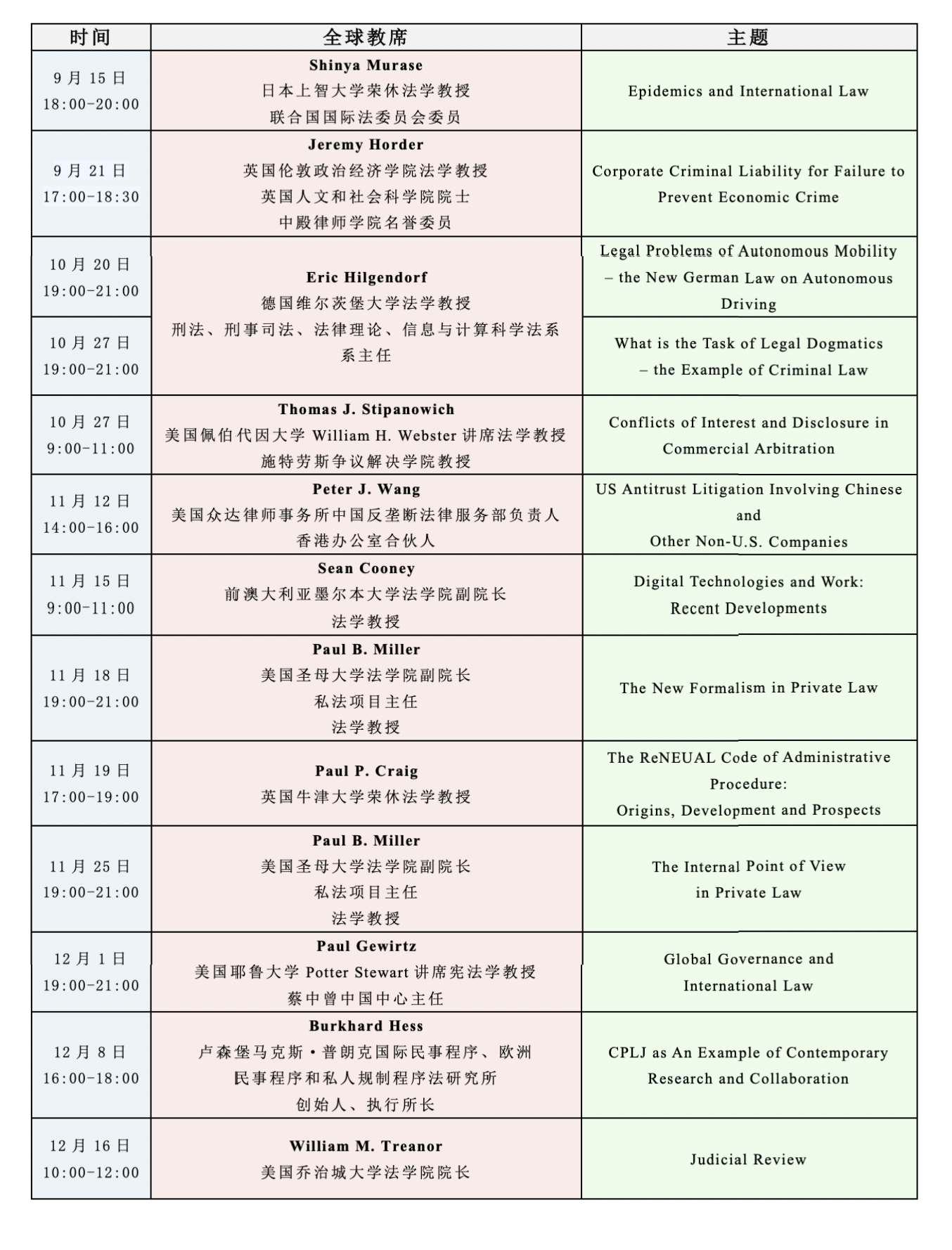 参与院校包括美国芝加哥大学beat365亚洲版官网、美国加州大学伯克利分校beat365亚洲版官网、美国加州大学洛杉矶分校beat365亚洲版官网、澳大利亚墨尔本大学beat365亚洲版官网、澳大利亚新南威尔士大学beat365亚洲版官网、澳大利亚悉尼大学beat365亚洲版官网、新加坡国立大学beat365亚洲版官网、香港大学法律学院、荷兰莱顿大学beat365亚洲版官网、德国法兰克福大学法律金融学院、瑞典斯德哥尔摩大学beat365亚洲版官网、英国伦敦玛丽女王学院beat365亚洲版官网、英国爱丁堡大学beat365亚洲版官网、英国伦敦大学学院beat365亚洲版官网、美国哥伦比亚大学beat365亚洲版官网、美国宾夕法尼亚大学beat365亚洲版官网。