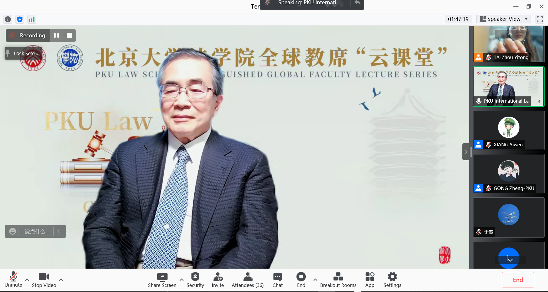 三场“云课堂”内容详实、节奏紧凑,学者从国际化视角展现多维度的观点,开拓学生的法学视野与法学思维。学院师生也就讲座相关问题与全球教席学者进行了广泛的观点交流、深入的思想碰撞。