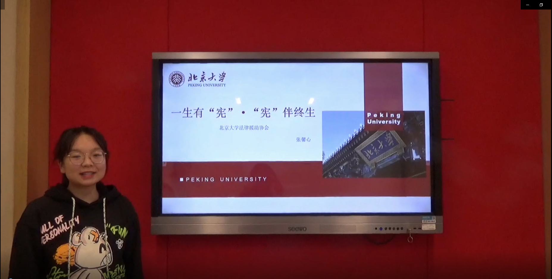 12月3日下午,在beat365亚洲版官网第23届研究生支教团的支持与协助下,“青春船长,法治起航”青少年普法宣传讲座以腾讯会议的方式面向河北省安新中学的800余名师生顺利举办。志愿者们紧密结合党史学习教育和学习贯彻党的十九届六中全会精神,围绕宪法、民法典等重要法律的条文,以案释法、寓教于乐,将晦涩难懂的法律知识用青少年听得懂、记得住、乐意学的方式讲出来,切实增强当地师生的法律意识,提高普法教育的实效性和参与度。在提问环节,同学们积极发言,志愿者们耐心解答,现场气氛活跃热烈。根据支教团成员的反馈,现场师生纷纷表示收获良多,青少年学生的宪法意识、国家意识、规则意识得到了切实增强。