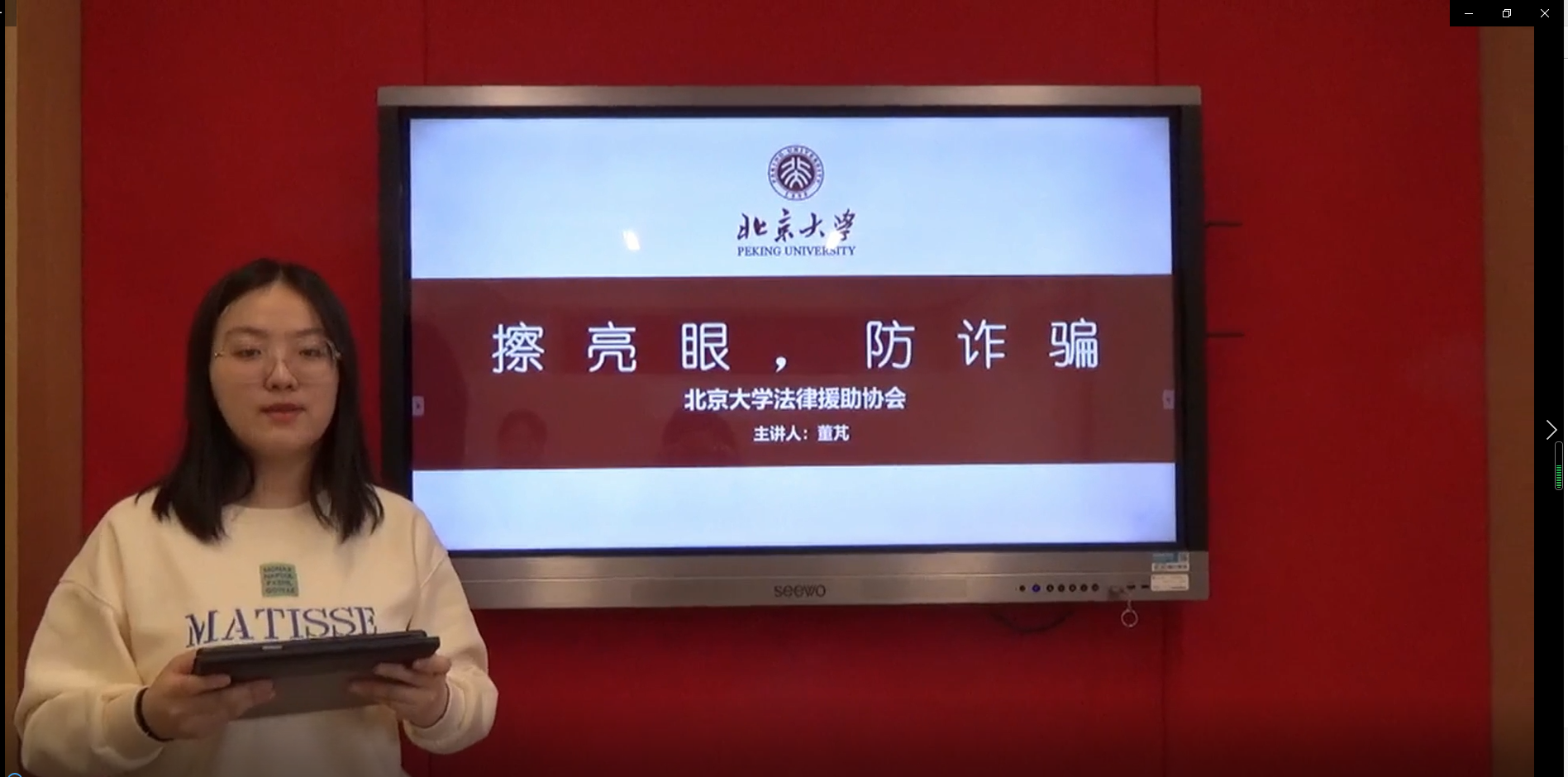 除了校园普法教育,beat365亚洲版官网还积极拓展普法宣传新阵地,探索普法宣传新方式,引导青年面向社区一线开展基层普法宣传,为宪法知识进社区贡献青春力量。为落实疫情防控要求,beat365亚洲版官网充分发挥志愿者的积极性与能动性,着眼于社区居民现实需求,精心录制宪法、防诈骗普法宣讲视频,面向燕园街道各社区居民播放。有干货、接地气的普法宣讲视频辅以街道司法所、社区工作人员的补充介绍,使得疫情防控常态化下的普法宣传依然开展顺利、效果良好。社区居民纷纷称赞普法志愿者们的创造性,并表示将积极学习相关法律知识、学会用法律武器保护自身合法权益。