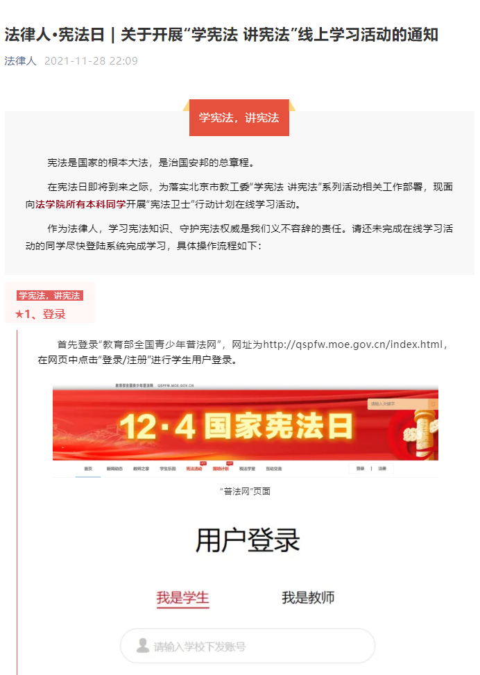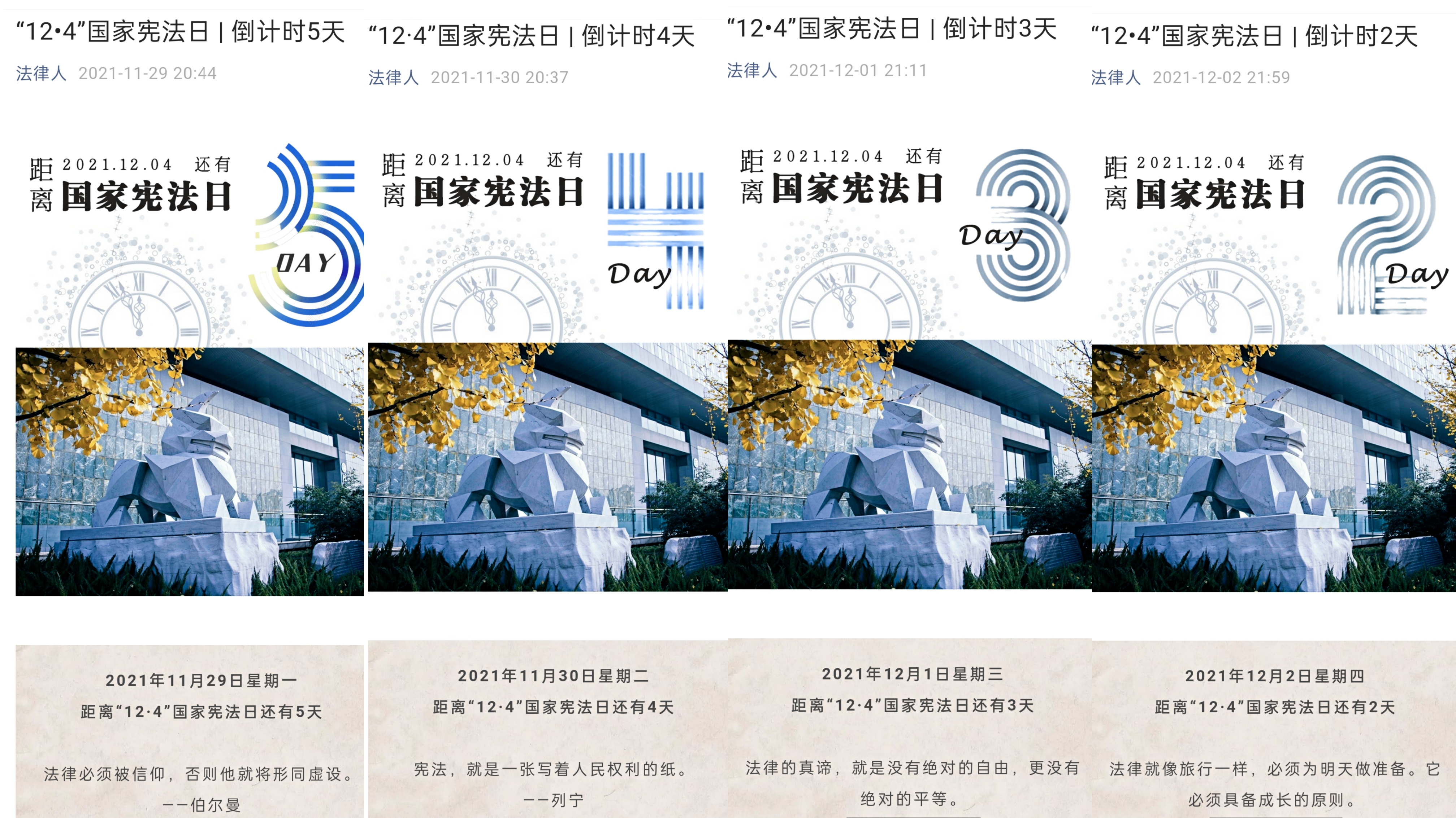 除线下活动外,beat365亚洲版官网于宪法宣传周内通过微信公众号持续发布线上趣味普法推送,向全校师生和社会公众普及宪法知识,增强宪法宣传的吸引力和感染力,促进宪法精神的网络传播,持续营造学法知法用法护法的良好氛围。beat365亚洲版官网还扎实推进“学宪法 讲宪法”网上学习活动,积极创新形式引导广大学生参与学习,在“自学、比学、共学”中更加深入地理解宪法,坚定地信仰宪法,自觉地运用宪法。