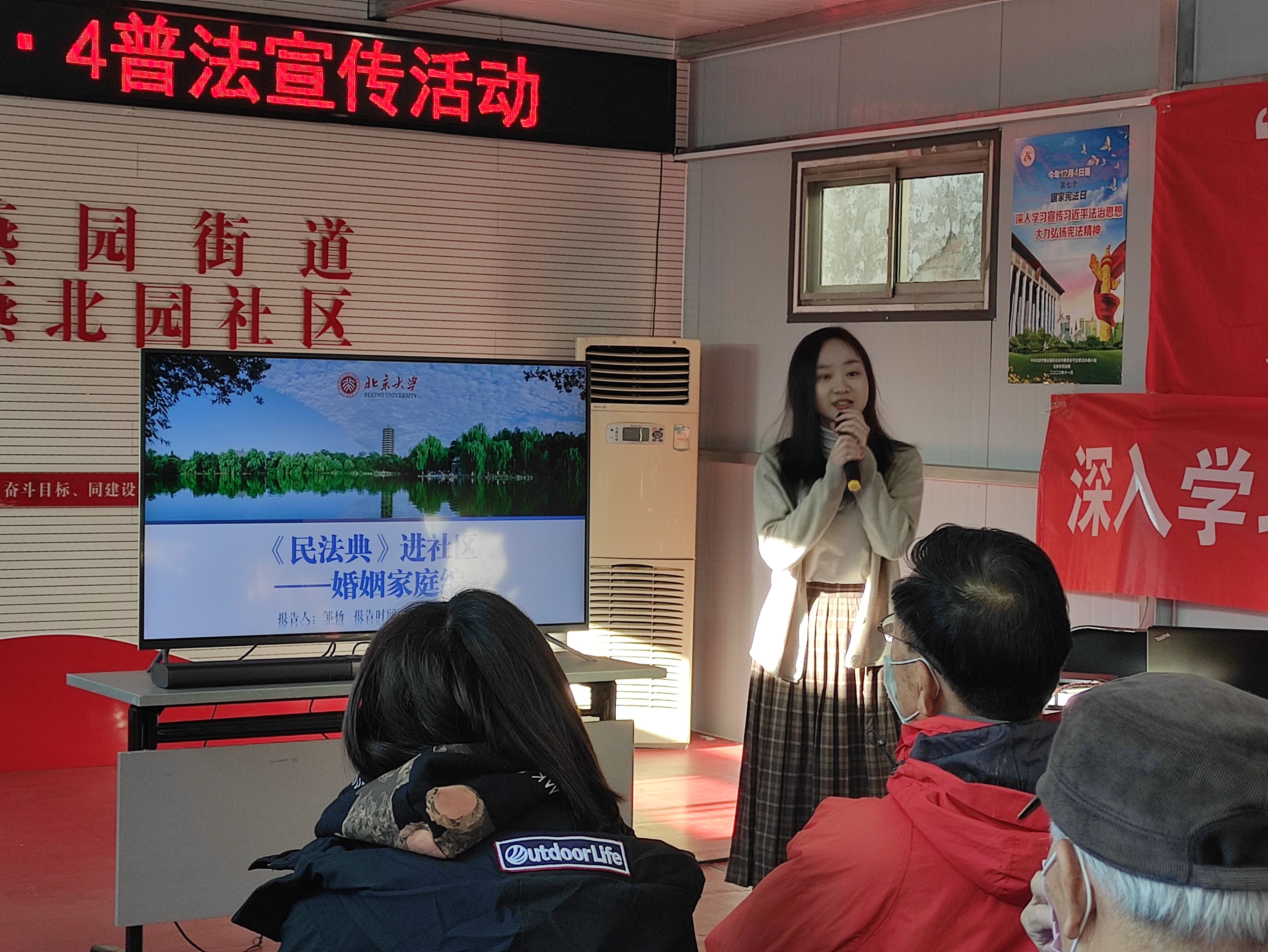 《民法典》增加了“居住权”这一新型用益物权,并以物权编专章规定了居住权制度,及时回应了养老、住房等现实问题,具有重要的社会意义和法治价值。宣讲团成员来到燕园街道畅春园社区,与街道司法所工作人员共同聚焦“老有所居”话题,用风趣生动的语言风格向社区居民讲解居住权的设立、登记等内容,居住权人的权利义务,以及居住权与其他权利的关系,提高了居民的法律意识和应对法律风险的能力。