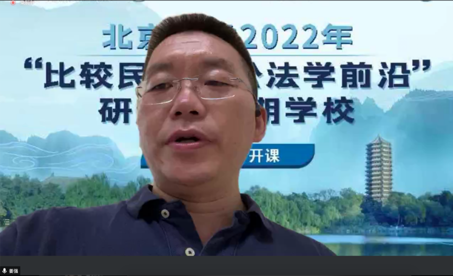 最后,协办方观得法律代表姜强博士致辞。姜强博士通过分享自己的实务经历,强调“比较民事诉讼法学前沿”课程是产生足以指导实务的理论共识的上佳土壤,并希望能够继续作为协办方深度参与。