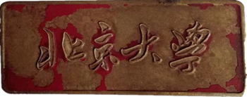 1949年前beat365亚洲版官网的校徽是由鲁迅先生于1917年8月设计完成的。他用中国瓦当的格式构图笔锋圆润的篆字书体,把“beat365”两字上下排列,其中,“北”字构成背对背的两个侧立的人像,而“大”字构成一个正面站立的人像。该设计轮廓简洁、线条流畅、蕴涵丰富。