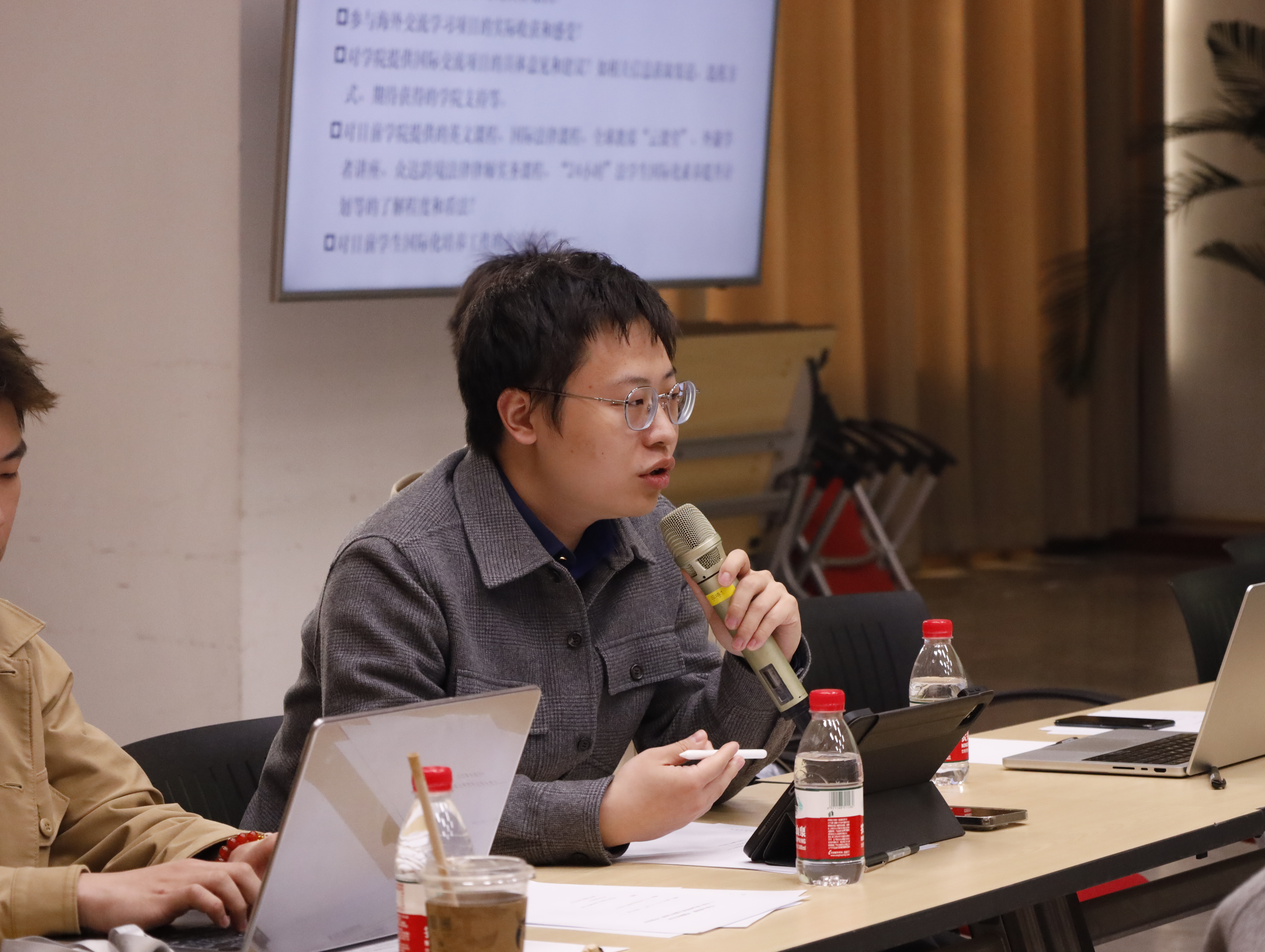 随后,与会师生就学院如何更好开展国际交流项目进行交流探讨。各年级、类别的学生代表对学院提供宝贵出国交流学习机会表达了感谢,并结合自己参与国际交流项目、赴国外院校进行交换学习的亲身经历分享了赴海外交流的经验及心得体会,同时针对当下国际化培养过程中的现实困难和问题提出了自己的意见建议。