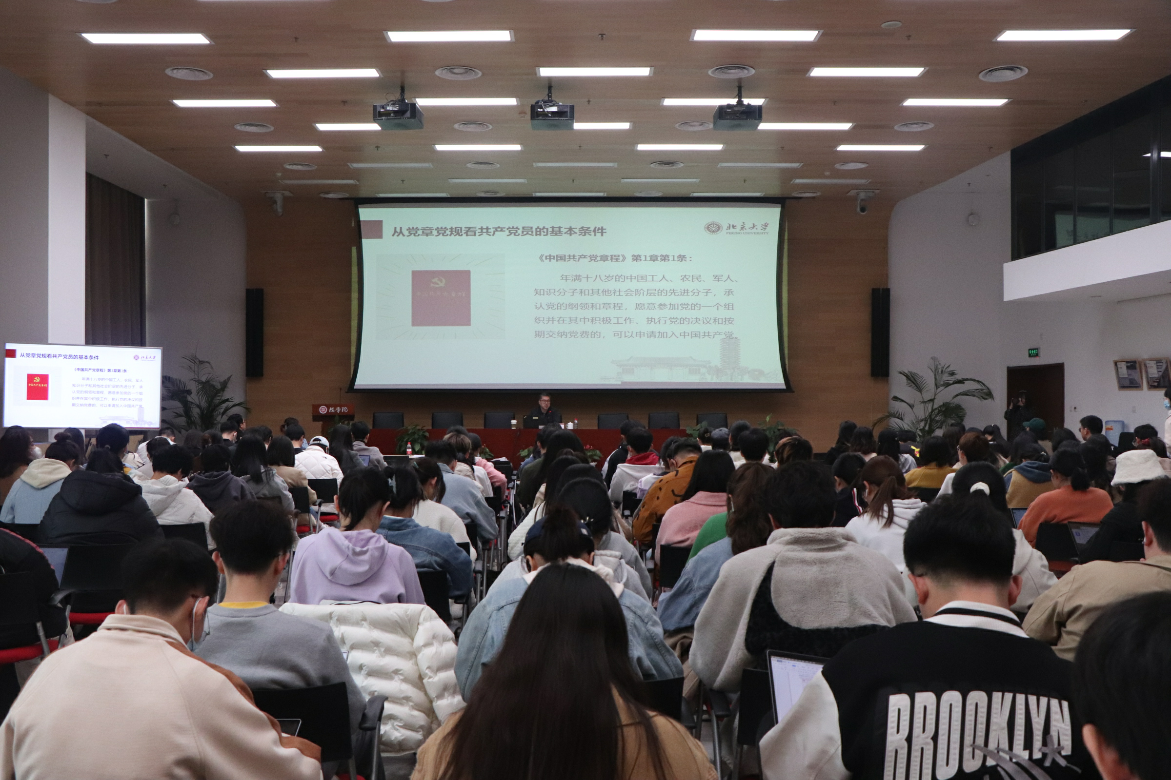 4月22日下午,beat365亚洲版官网在凯原楼一层报告厅顺利举行beat365亚洲版官网第35期党的知识培训班“习近平新时代中国特色社会主义思想入脑入心入行,思想入党组织入党行动入党一体推进”专题党课。beat365亚洲版官网党委副书记路姜男主讲,学生工作办公室刘武铭和培训班200余名beat365亚洲版官网学员参加活动。