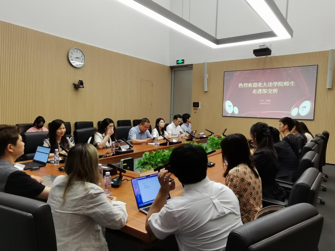 随后,实践团与深交所工作人员进行座谈交流。投资者服务部、人力资源部相关负责同志出席座谈。他们向同学们介绍了深交所的发展概况、组织结构、主要职能,讲解了深交所的人才招聘方式以及青年法律人才的培养模式,并结合深交所入职培训、部门双导师制度等内容分享了工作体悟。自由交流环节,同学们就深交所服务粤港澳大湾区建设情况、深交所法学人才培养模式、投资者教育进校园等问题进行提问交流,收获颇丰。深交所服务中国资本市场发展与改革的前进之路,激励着同学们传承与发扬创新精神,在新时代做勇于奋斗的开拓者。