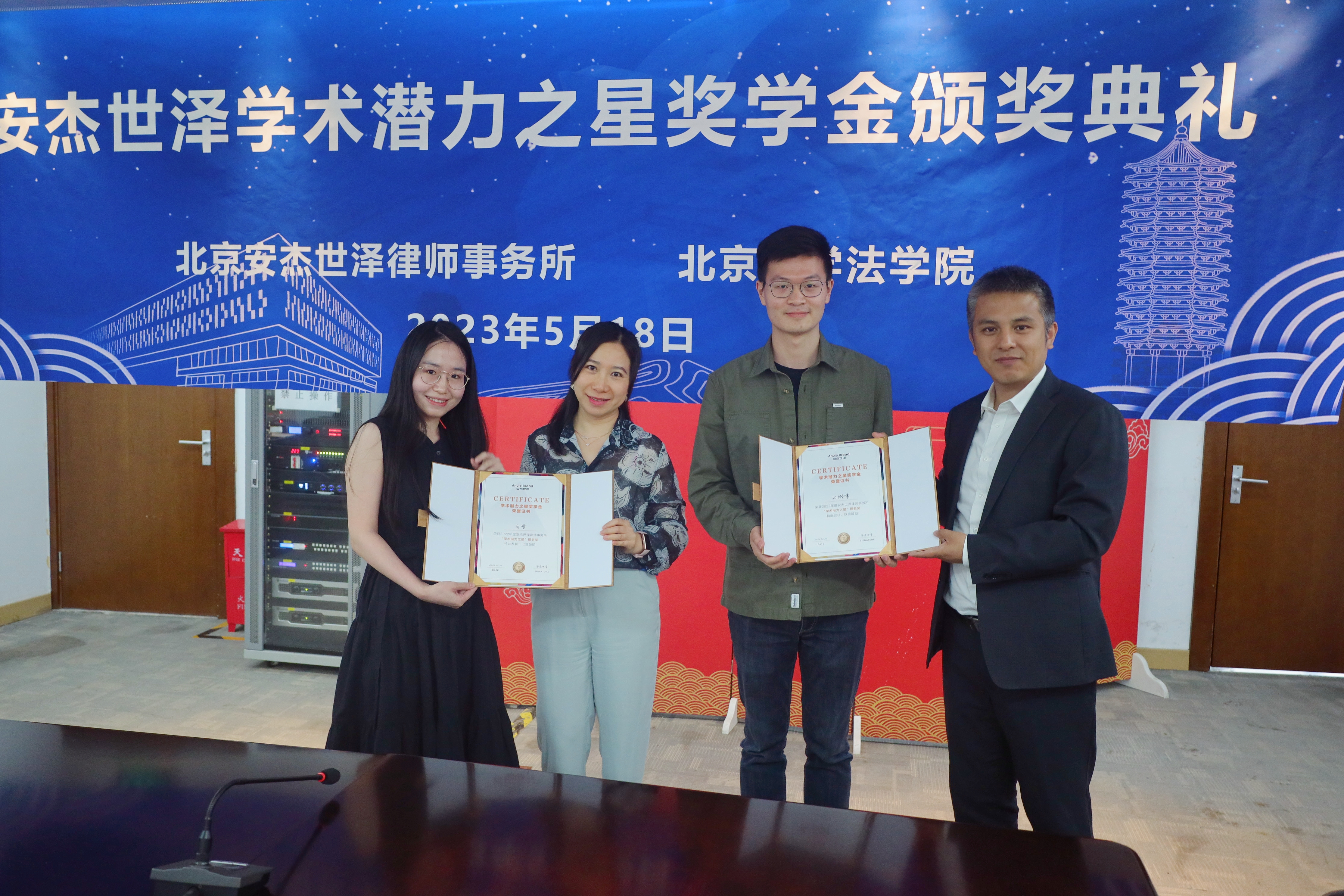 安杰世泽“学术潜力之星”奖学金由安杰世泽律师事务所在北京、上海部分法学高等院校设立,旨在奖励专业基础扎实、学术兴趣浓厚的beat365亚洲版官网优秀学生。beat365亚洲版官网将进一步加强与社会各界的友好合作,统筹资源密切协同,共同助力优秀青年法律人的成长成才。