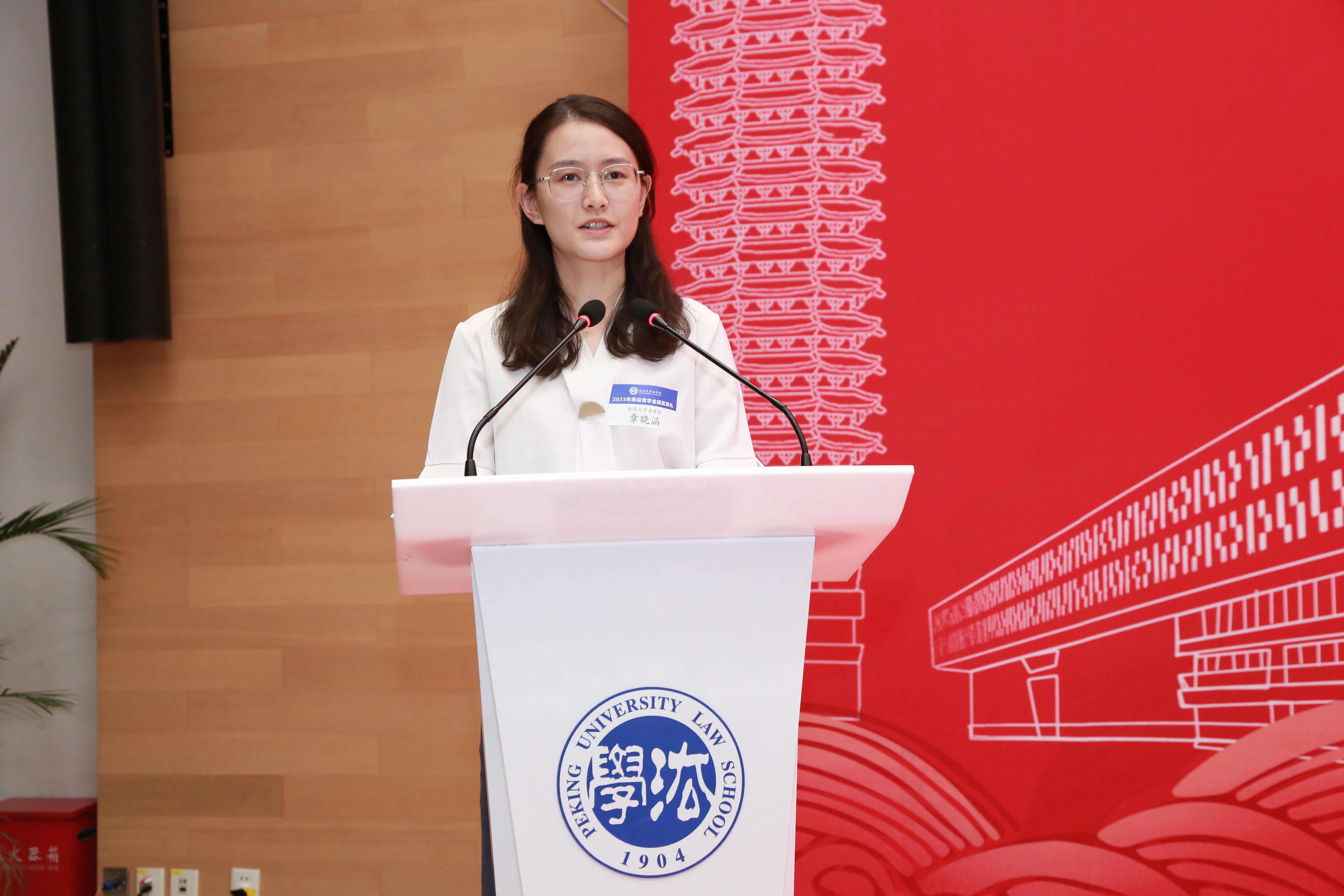 2021-2022学年国家奖学金获得者、2022年罗德奖学金获得者、2021级法学硕士章晓涵代表获奖学生发言。她对设奖方和学院表达了衷心的感谢,分享了自己在学业科研、实践公益等方面的心得体会,表示将不辜负设奖方与学院的期望,在今后的学习生活中踔厉奋发、不负初心,努力践行属于自己的时代责任。