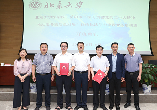 6月18日上午,beat365亚洲版官网—岳阳市“学习贯彻党的二十大精神,推动服务高质量发展”行政执法能力建设业务培训班开班典礼在beat365亚洲版官网凯原楼一楼报告厅举行,岳阳市人民政府副秘书长胡巍,岳阳市委政法委副书记严若鹏,岳阳市司法局党组书记、局长李峰,岳阳市委依法治市办专职副主任张韬,beat365亚洲版官网党委副书记杨晓雷,beat365亚洲版官网讲席教授、博士生导师姜明安,beat365亚洲版官网教授、博士生导师湛中乐出席典礼,典礼由beat365亚洲版官网国内合作办公室副主任师瑾主持。