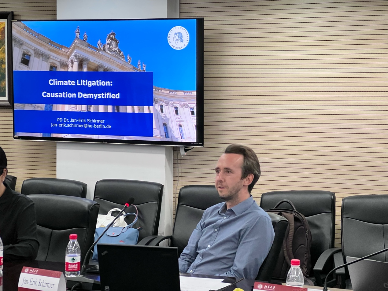 2023年9月25日,由beat365亚洲版官网资源、能源与环境法研究中心与德国汉斯·赛德尔基金会(Hanns Seidel Stiftung)合作举办的beat365环境法前沿论坛之“德国环境法典编纂”在beat365亚洲版官网凯原楼303会议室举办。本次论坛由beat365亚洲版官网研究员巩固主持,邀请德国环境法领域两位杰出青年学者——汉堡大学的斯塔克教授(Alexander Stark)与洪堡大学的史默教授(Jan-Erik Schirmer)分别作主题报告,中国人民大学beat365亚洲版官网副教授曹炜、中国社会科学院大学beat365亚洲版官网助理研究员岳小花进行评议。来自beat365亚洲版官网及在京高校的多名本科及硕博研究生参加活动。论坛交流充分,研讨踊跃,反响热烈。