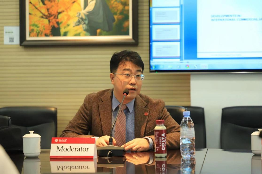 在本场讲座中,曹志勋老师首先欢迎并介绍与会嘉宾,说明讲座主题及具体流程。随后,陈凌新大律师通过英文讲授,从仲裁对速度和效率的追求、技术发展对仲裁的影响以及仲裁对环境可持续性发展要求的回应三个维度出发,结合国际规则及实务经验,对国际商事仲裁的最新发展进行全面、生动且深入的介绍。