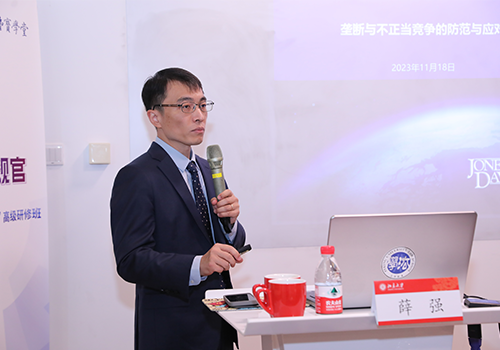 薛强老师以垄断和不正当竞争的防范与应对为主题,为学员梳理了全球反垄断与不正当竞争的规制历史与发展方向,分析了不同司法辖区的反垄断执法体制与关注重点,厘清了涉及经营者集中申报、垄断协议审查与滥用市场支配地位等关键问题的理论与实操方面。课程讲述贯穿了法理、法律适用与比较法的视角,内容上共性分析与个案剖析相结合,形式上理论传授与交流互动相结合,令学员们受益匪浅。