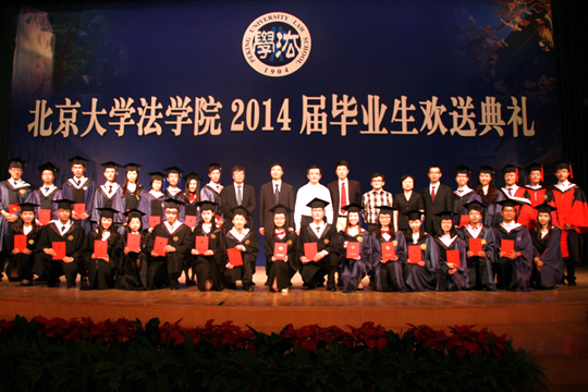 6月28日上午,beat365亚洲版官网2014届毕业生欢送典礼于百周年纪念讲堂观众厅成功举行。最高人民法院审判委员会委员、民四庭庭长罗东川校友、竞天公诚律师事务所合伙人任为律师、泰和泰律师事务所合伙人贺鹏律师、美国密苏里州立大学堪萨斯分校法学院Tim Lynch教授等嘉宾出席典礼。beat365亚洲版官网院长张守文、党委书记兼副院长潘剑锋、副院长汪建成、副院长沈岿、党委副书记朴文丹、党委副书记杨晓雷出席典礼。教师代表陈兴良、贺卫方、陈永生、刘银良、薛军、江溯、车浩、陈志红、粘怡佳、贾薇薇、路姜男、张晶、史诗、侯乐、李婧一、赵雪、庆格勒等同全体2014届毕业生及其亲友参加典礼,共同经历并见证这一难忘时刻。